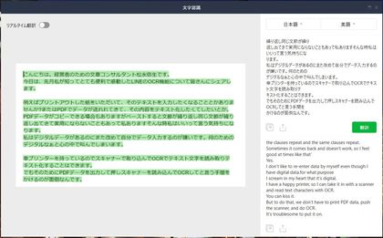 もちろん表示されている1行ごとに改行が入ってしまうので、手作業は必要ですが、それはどのOCRを使っても同じ。LINEなら、パソコンモニター上で一連の作業ができるので、これまでと比べて断然楽になりました!