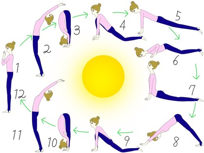 太陽礼拝は、ヨガのポーズを組み合わせた一連の動作をいいます。インドのラジオ体操といった感じ。