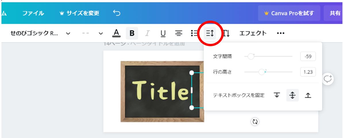 Canvaの場合は、一行単位でしか文字間を指定できないので、その点はWordほど自由度はありません。